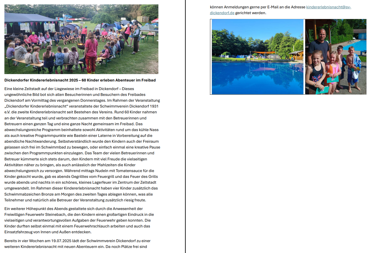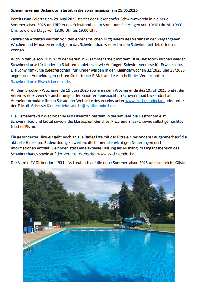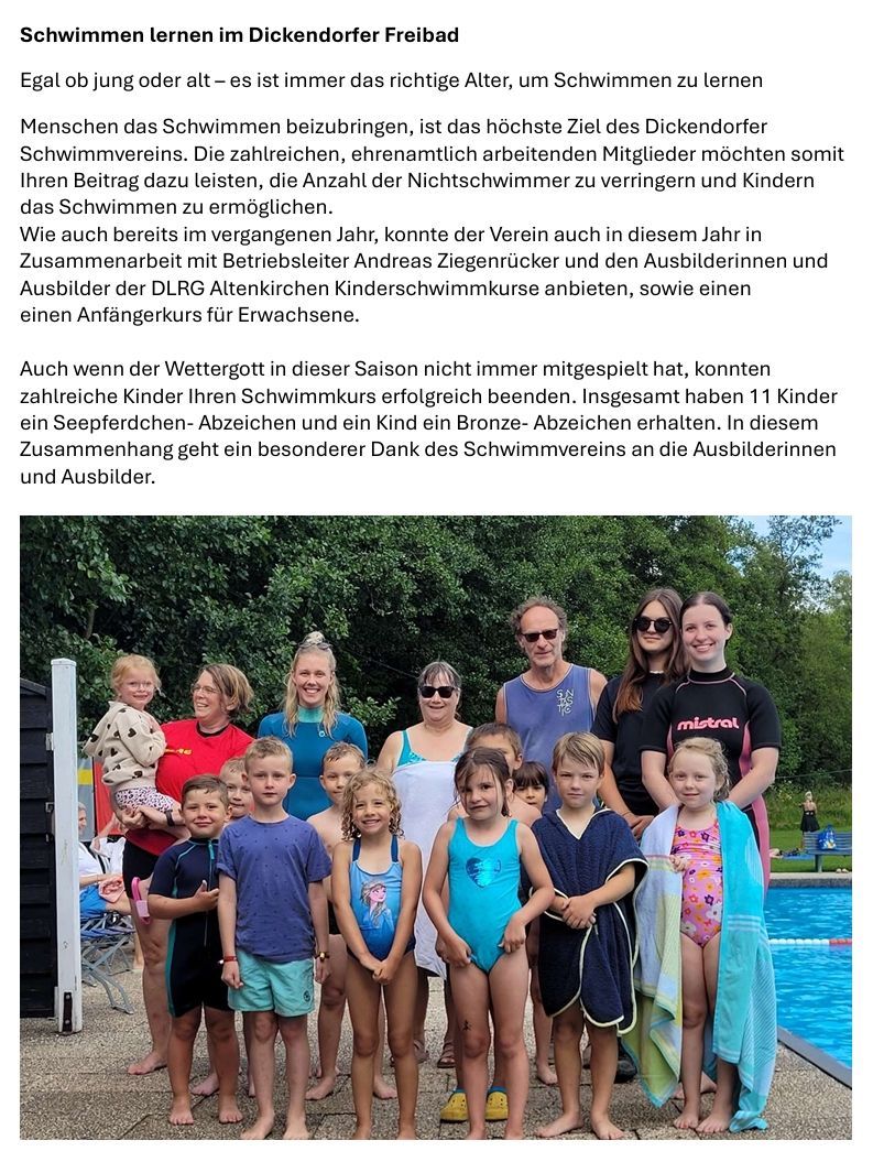 Schwimmverein Dickendorf freut sich auf die neue Saison 2024
