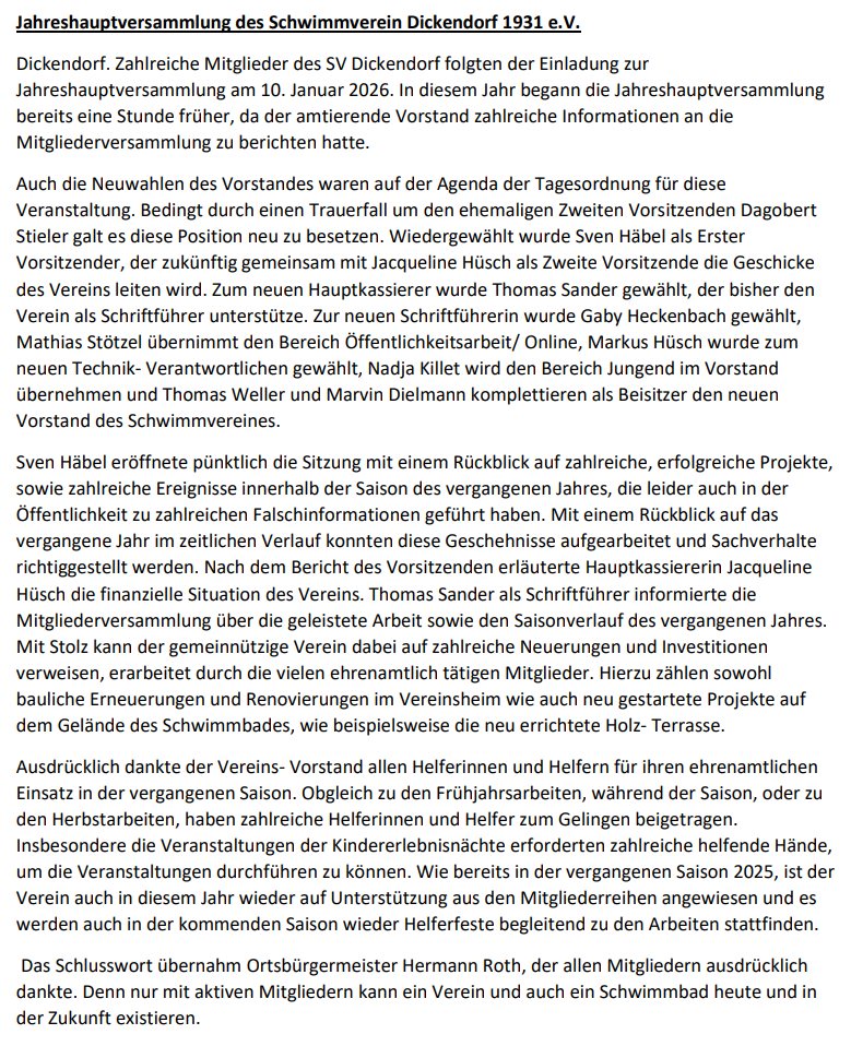 Schwimmverein Dickendorf freut sich auf die neue Saison 2024